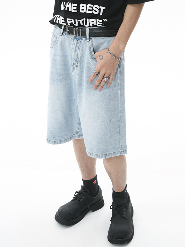 Men’S Retro Loose Distressed Denim Shorts