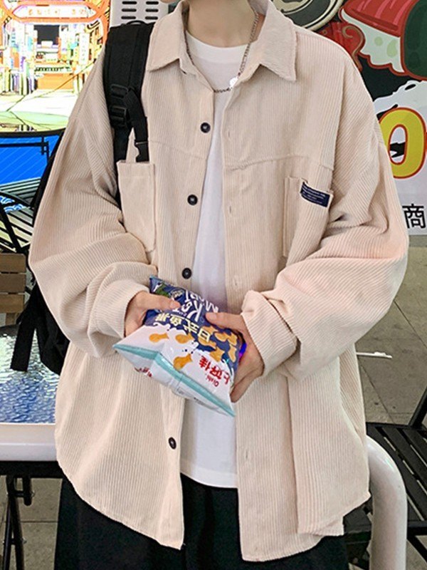 Description: Crafted from corduroy fabric, cuts to a flattering silhouette, features patched pockets to the front chest, with button closure and dropped long sleeves design.