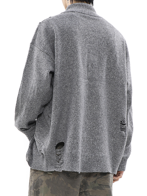 Be the first to review “Men’s Solid Ripped Metal Decor Cardigan Sweater”