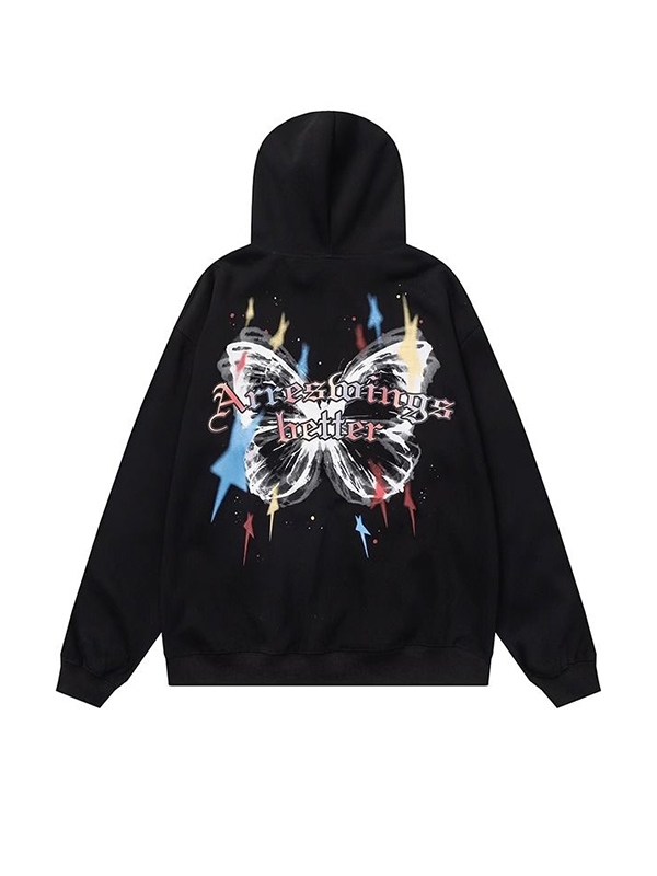 Unique Design: The hoodie features a vibrant butterfly and star print, adding a touch of street and vintageStyle to your outfit.
