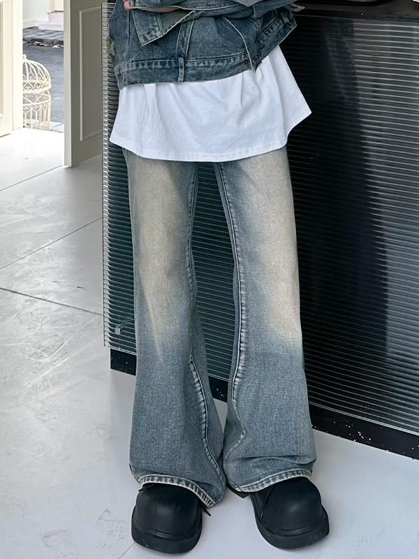 Men’s Vintage Wash Flared Loose Jeans