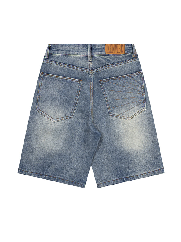 Men’s Washed Distressed Embroidered Loose Shorts