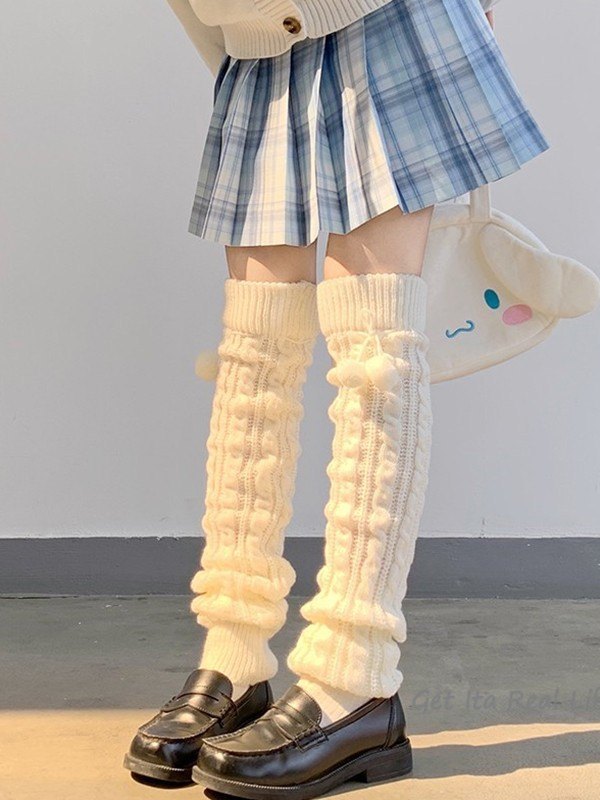 Details: Made from cable knit fabric, with pompom embellished at cuffs.