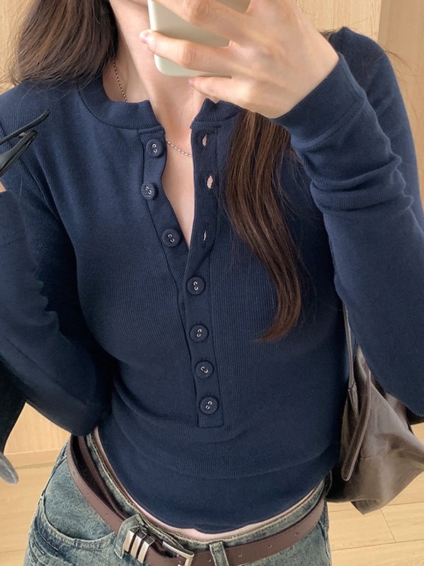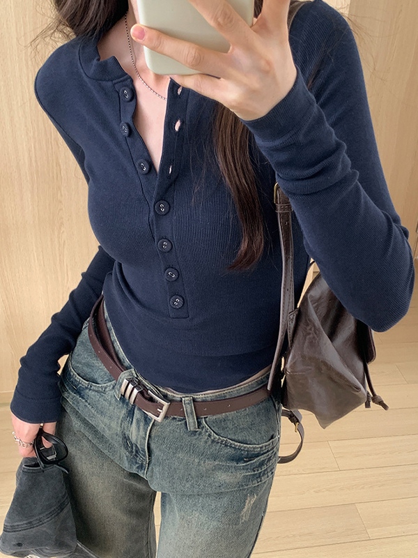Be the first to review “Solid Breasted Slim Long Sleeve Knit”