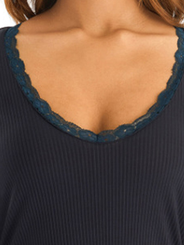 Feminine Details: The lace trim adds a delicate and feminine touch to this classic knit top.