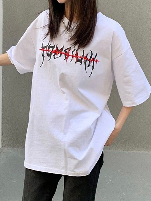 Street Distressed Graphic Print Oversized Short Sleeve Tee