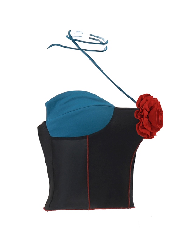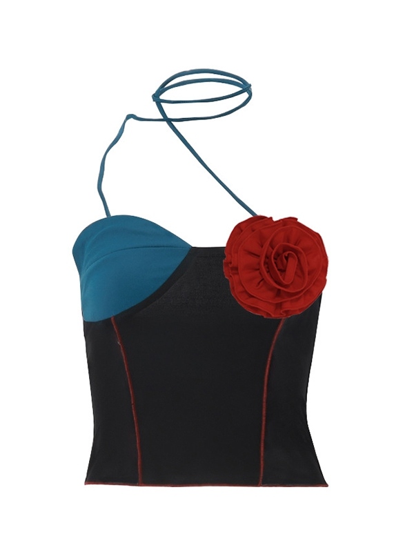 Be the first to review “Three-dimensional Flower Decor Splice Halter Vest”