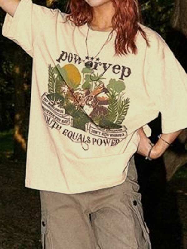 Vintage Dog Print Half Sleeve Oversized Short Sleeve Tee