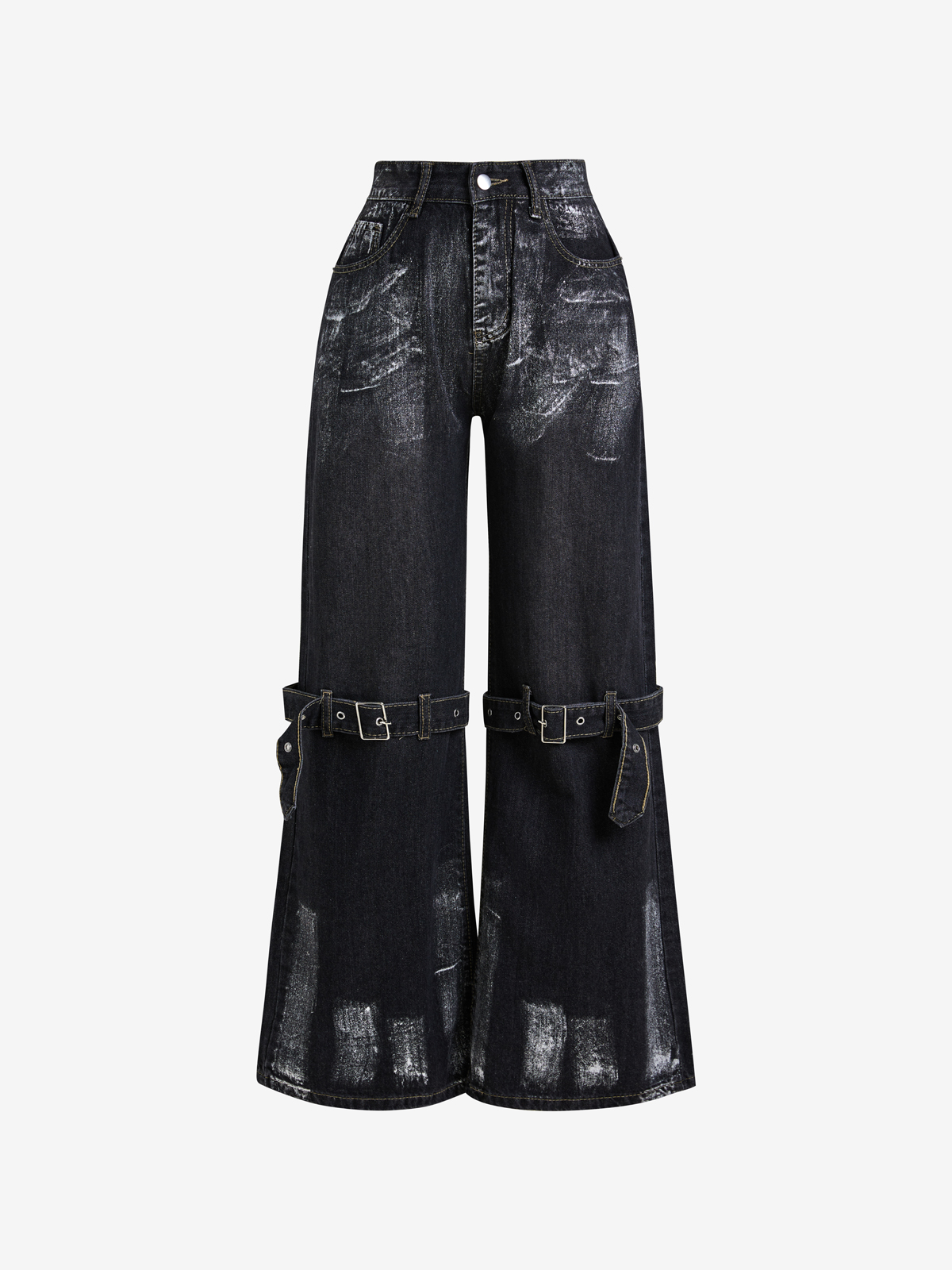 Wash Distressed Rhinestone High Rise Boyfriend Jeans