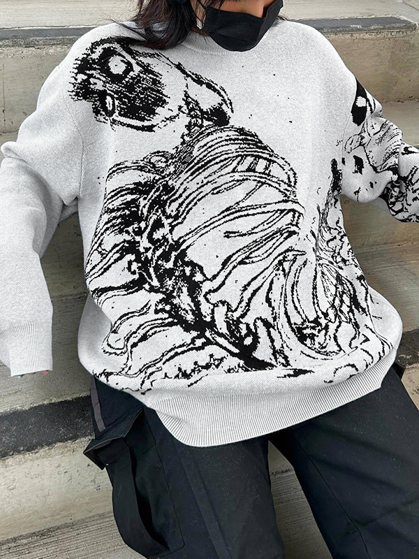 Hip Pop Skeleton Jacquard Pullover Sweater